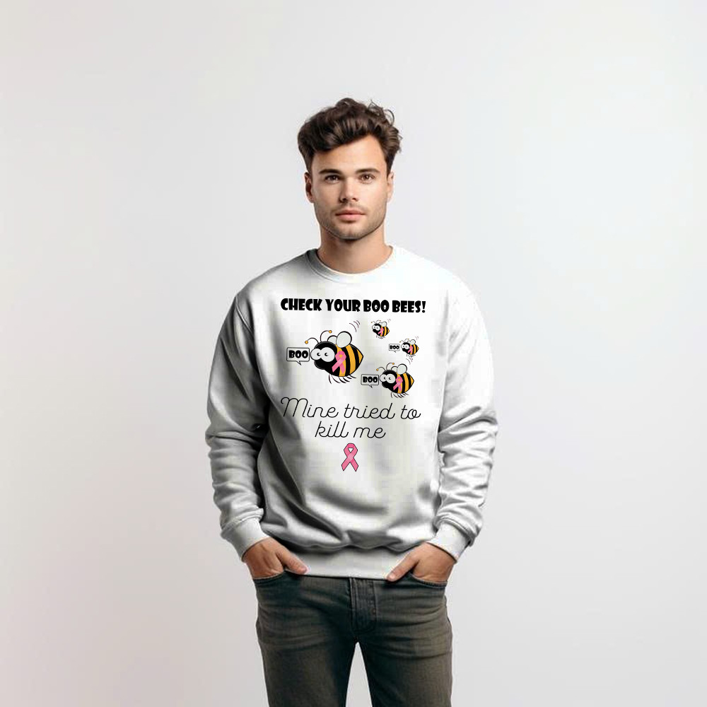 Check Your Boo Bees Sweatshirt Breast Cancer Ribbon Funny Bee Shirts Gift For Patients.