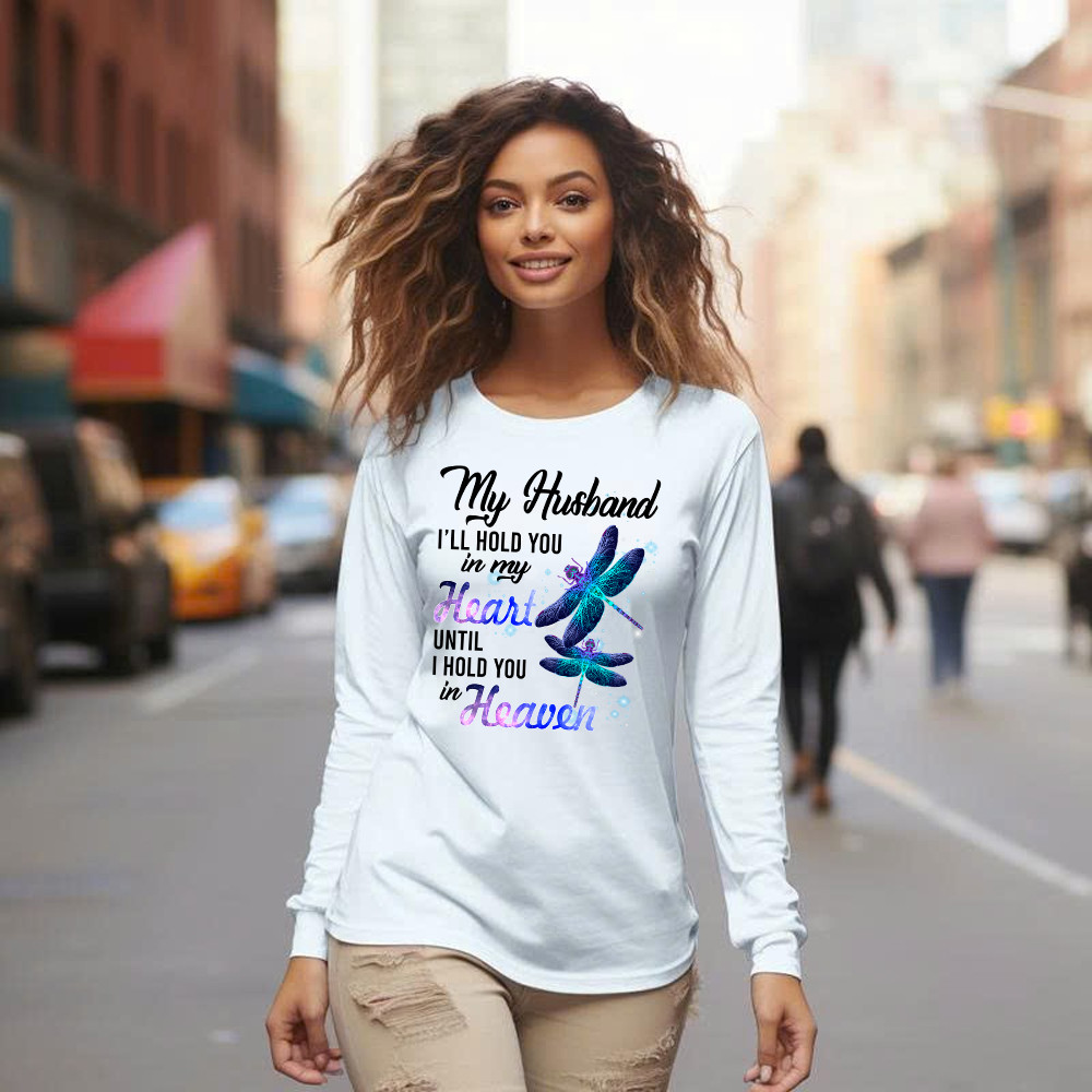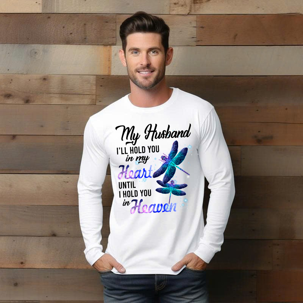 Dragonfly I Will Hold You In My Heart In Heaven Long Sleeve Shirt Sympathy Gifts For Loss Of Husband.