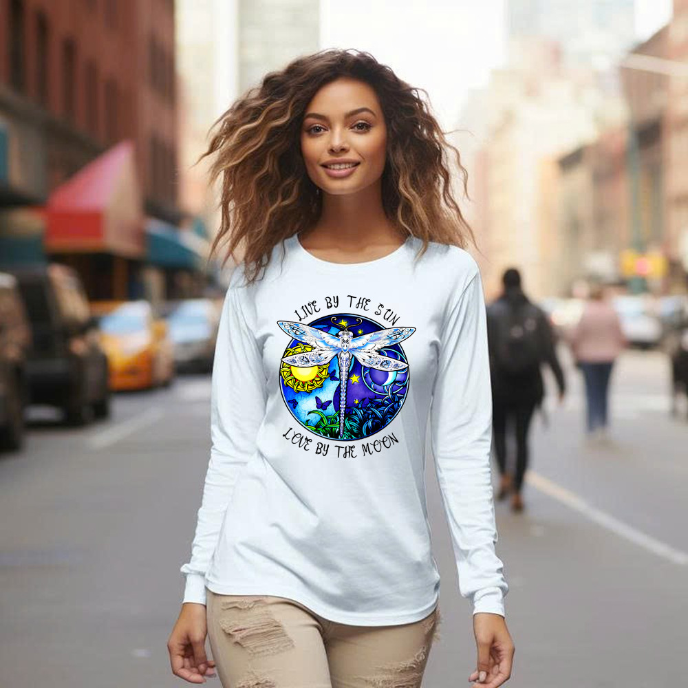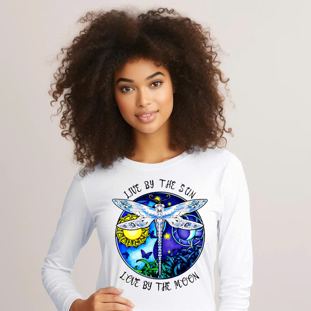 Dragonfly Live By The Sun Love By The Moon Shirt With Sayings Dragonfly Long Sleeve Shirt Women.