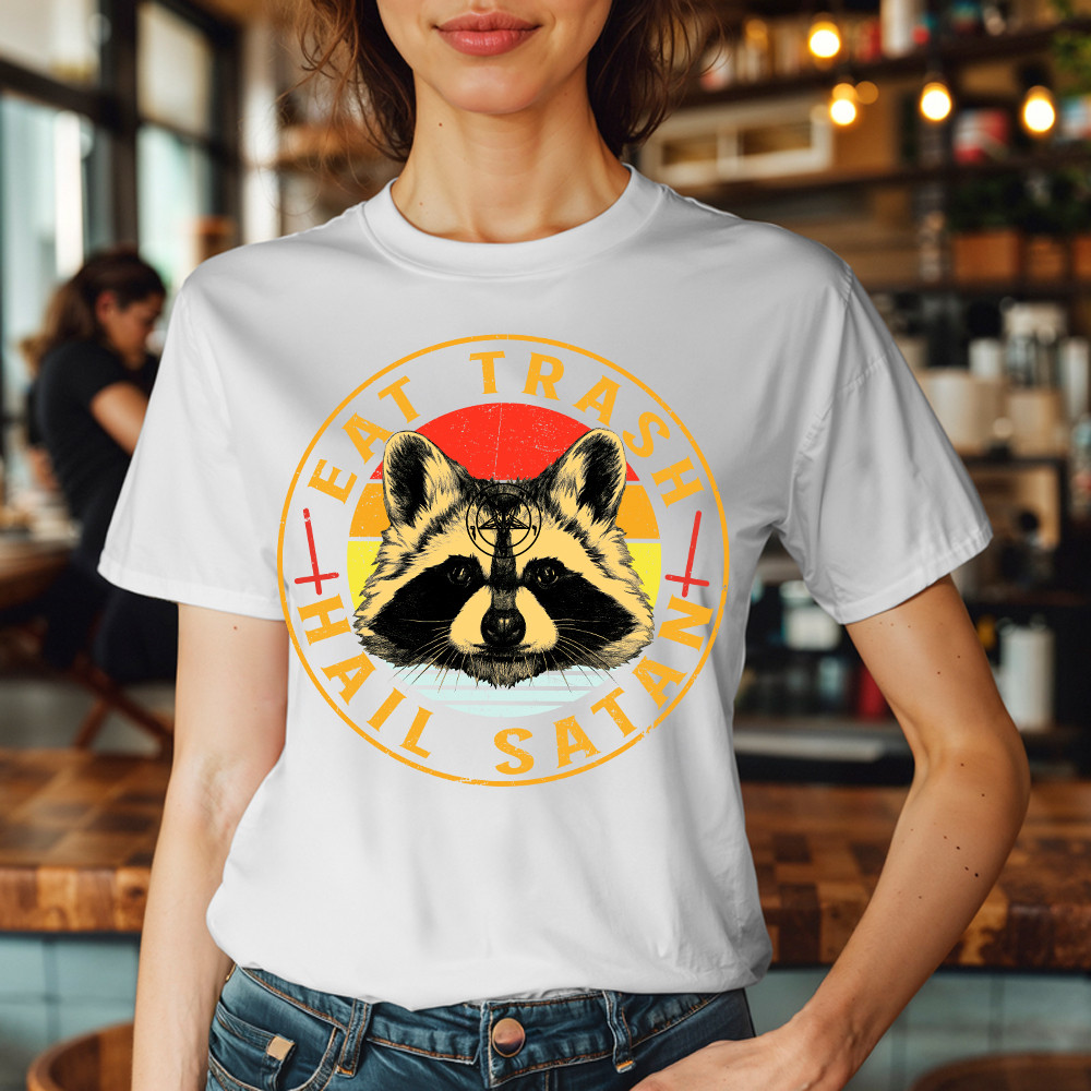 Eat Trash Hail Satan Shirt Racoon Graphic Retro T Shirt Design Gift For Him.
