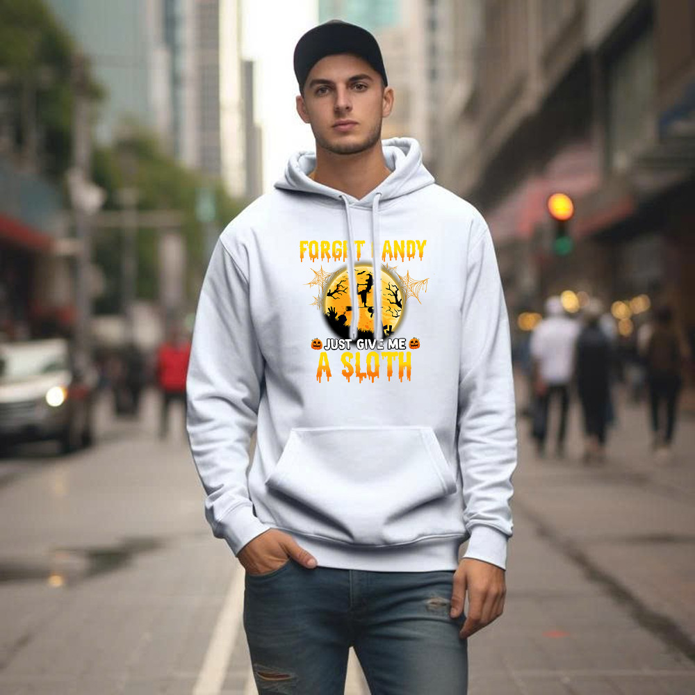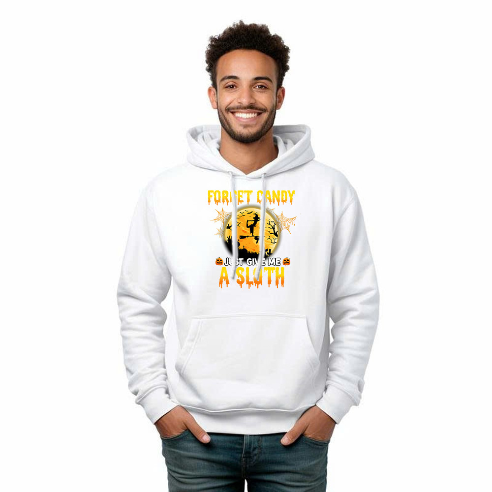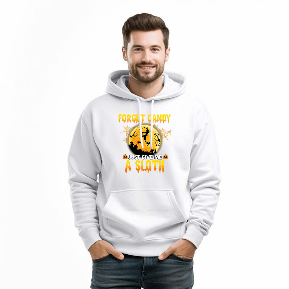 Forget Candy Just Give Me A Sloth Shirt Funny Witch Happy Halloween Hoodie Sloth Lovers Gift.