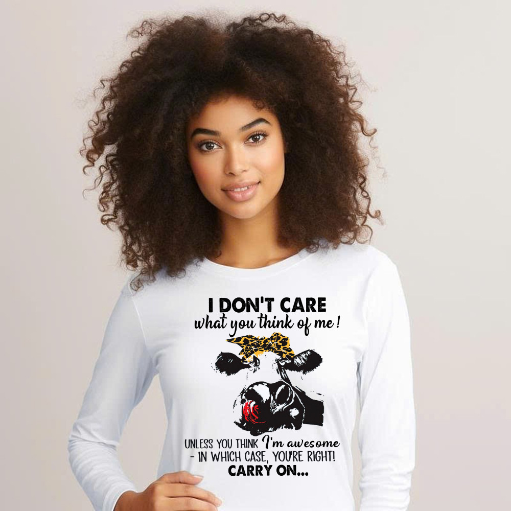 I Don’t Care What You Think Of Me Shirt Funny Cow Female Long Sleeve Shirt Gift For Ranchers.