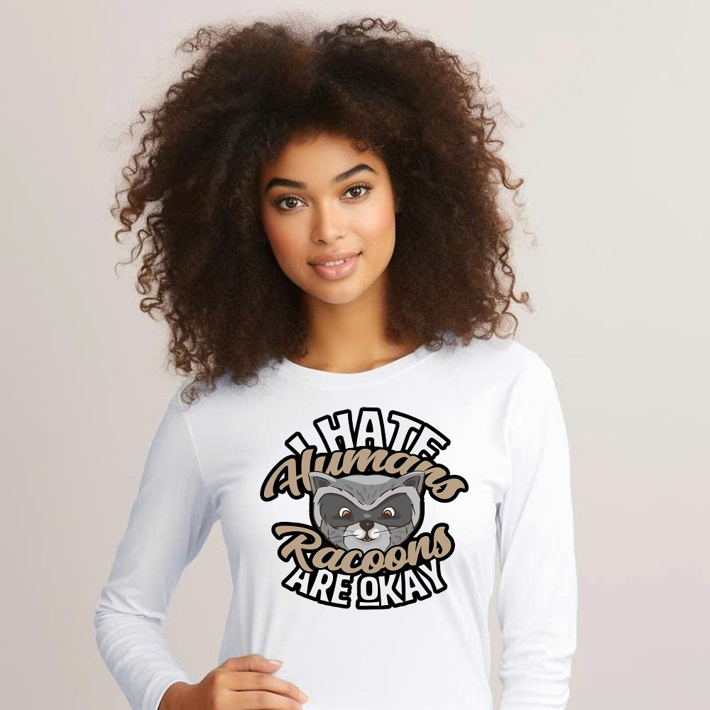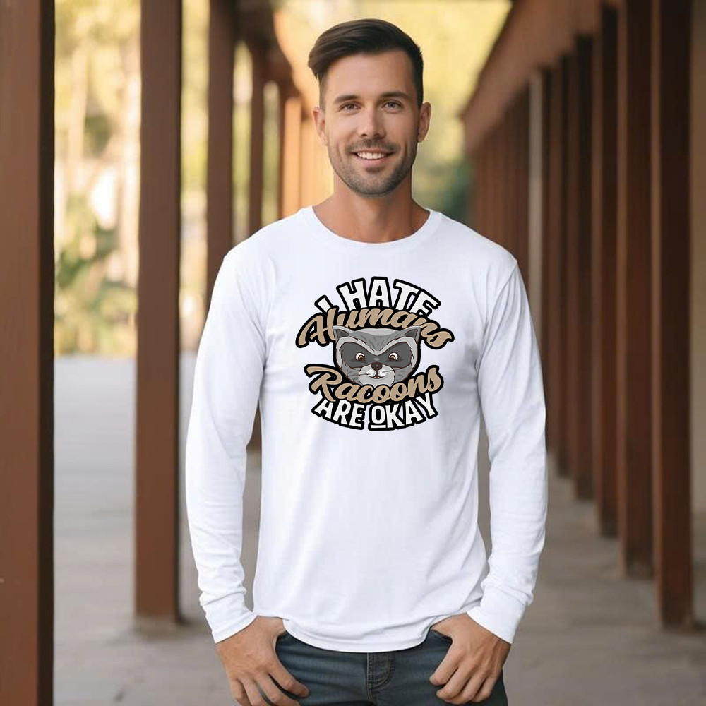 I Hate Human Racoons Are Okay Long Sleeve Shirt Funny Sayings Themed Gifts For Raccoon Lovers.