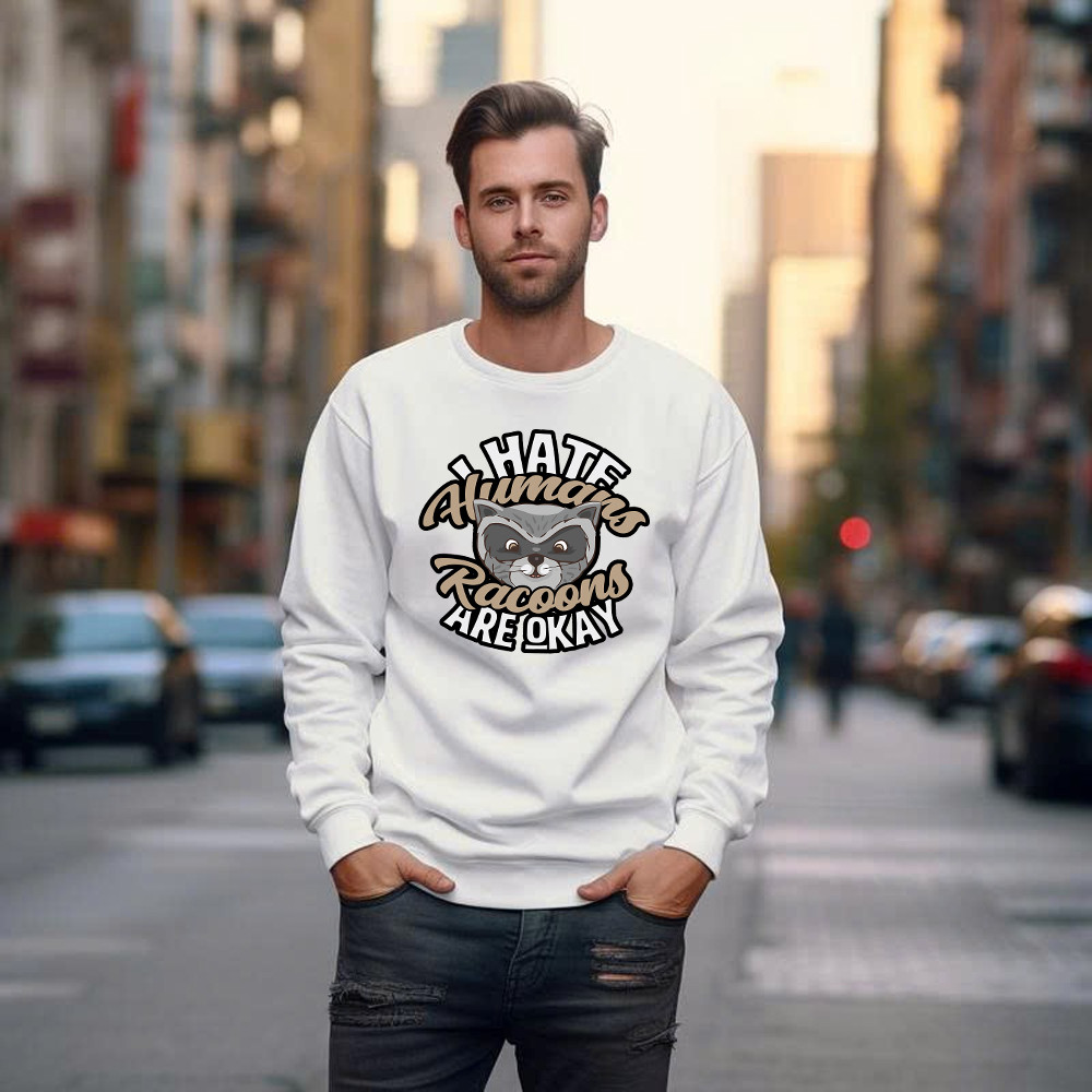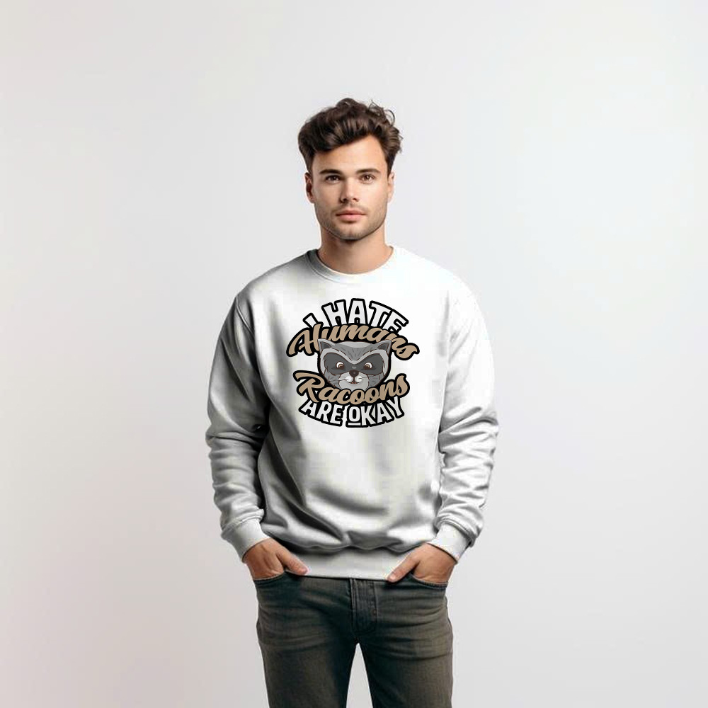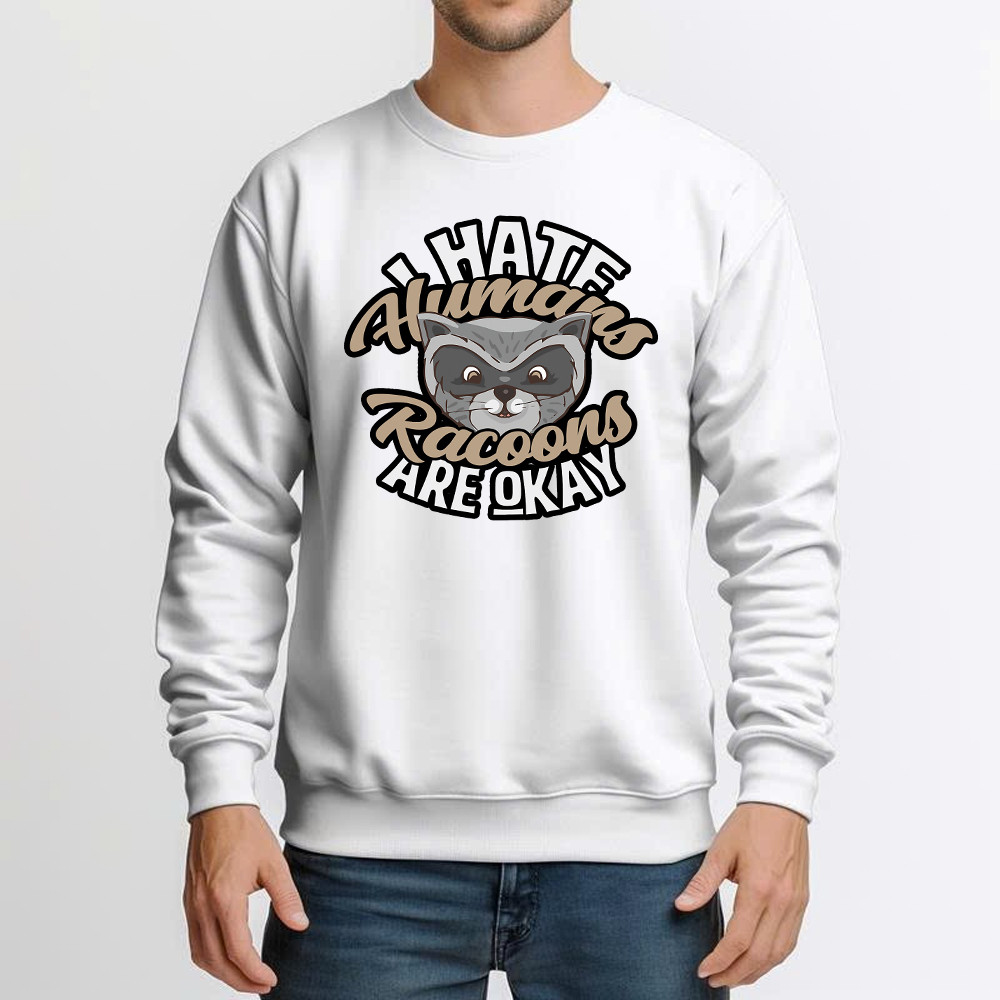 I Hate Human Racoons Are Okay Sweatshirt Funny Sayings Themed Gifts For Raccoon Lovers.