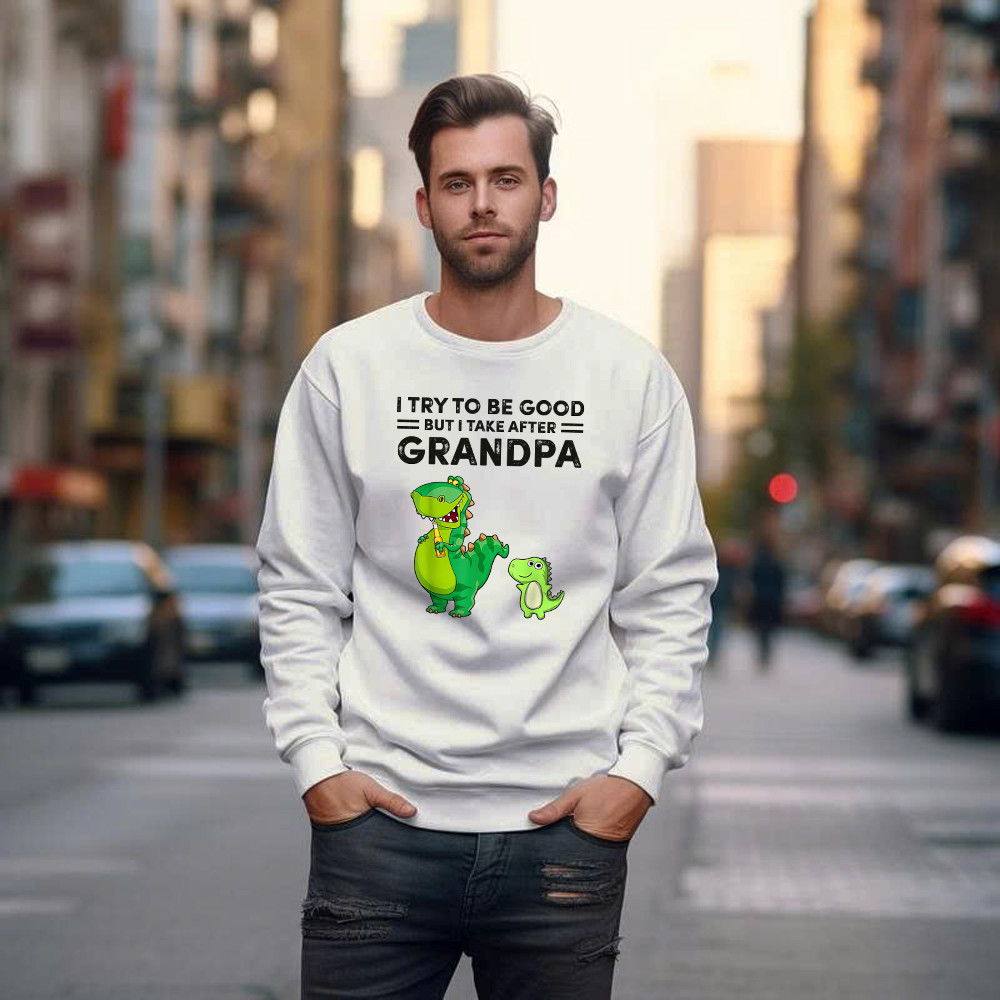 I Try To Be Good But I Take After Grandpa Shirt Funny Drinking Dinosaurs Sweatshirt Grandpa Gift.