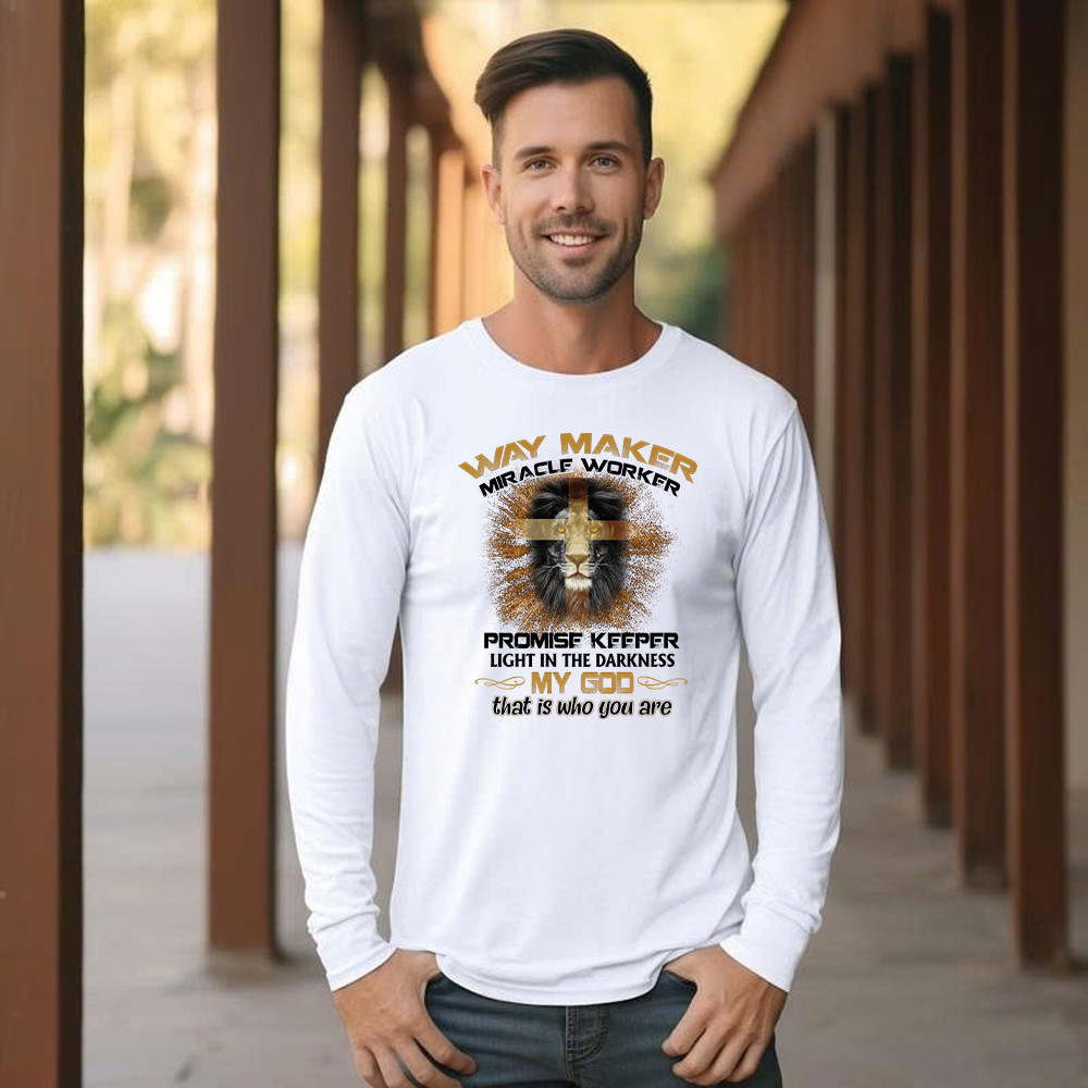 Lion Way Maker Miracle Worker Promise Keeper Long Sleeve Shirt Mens Christian Shirt Gifts For Men.
