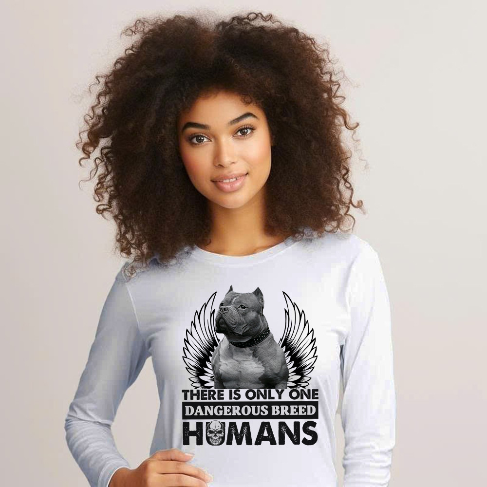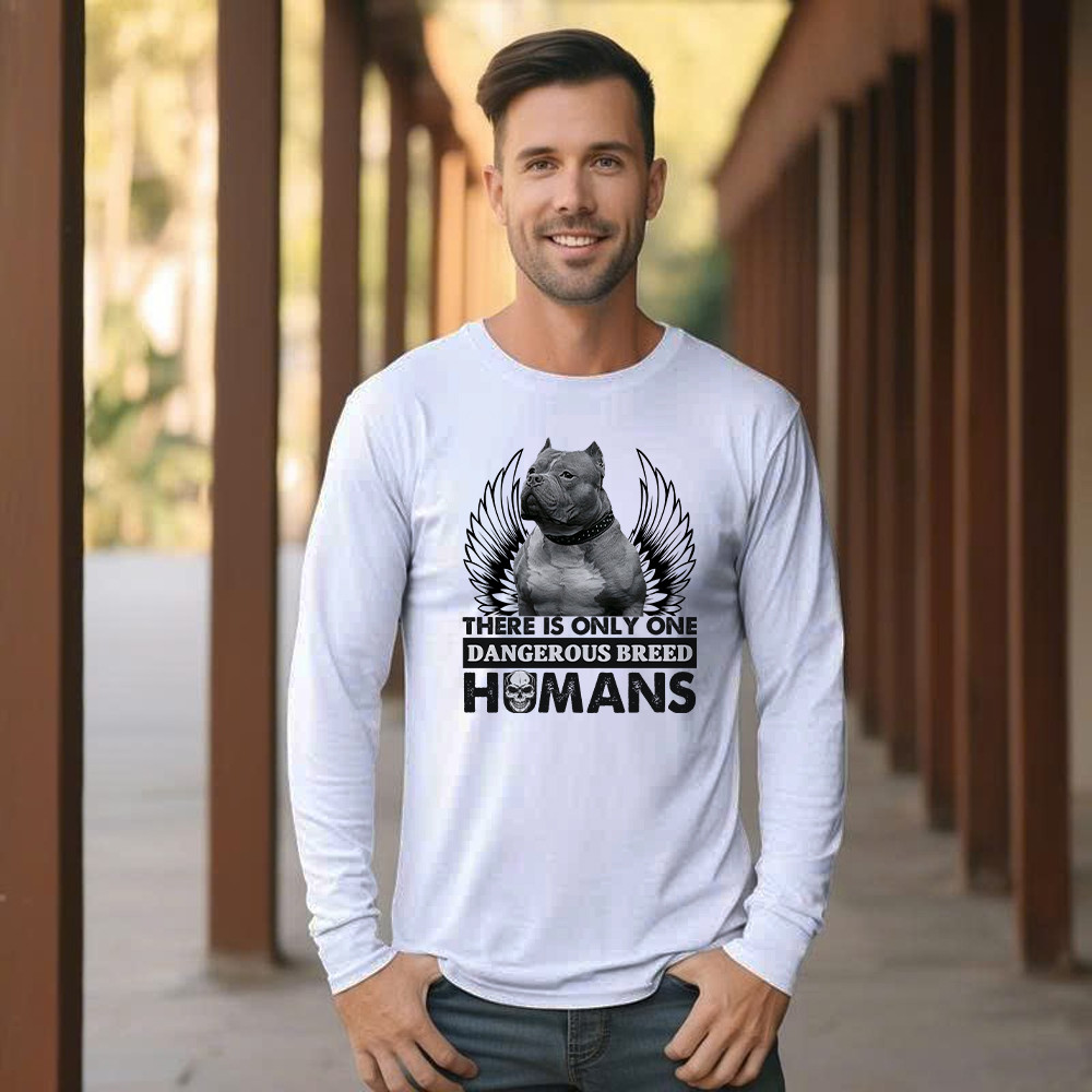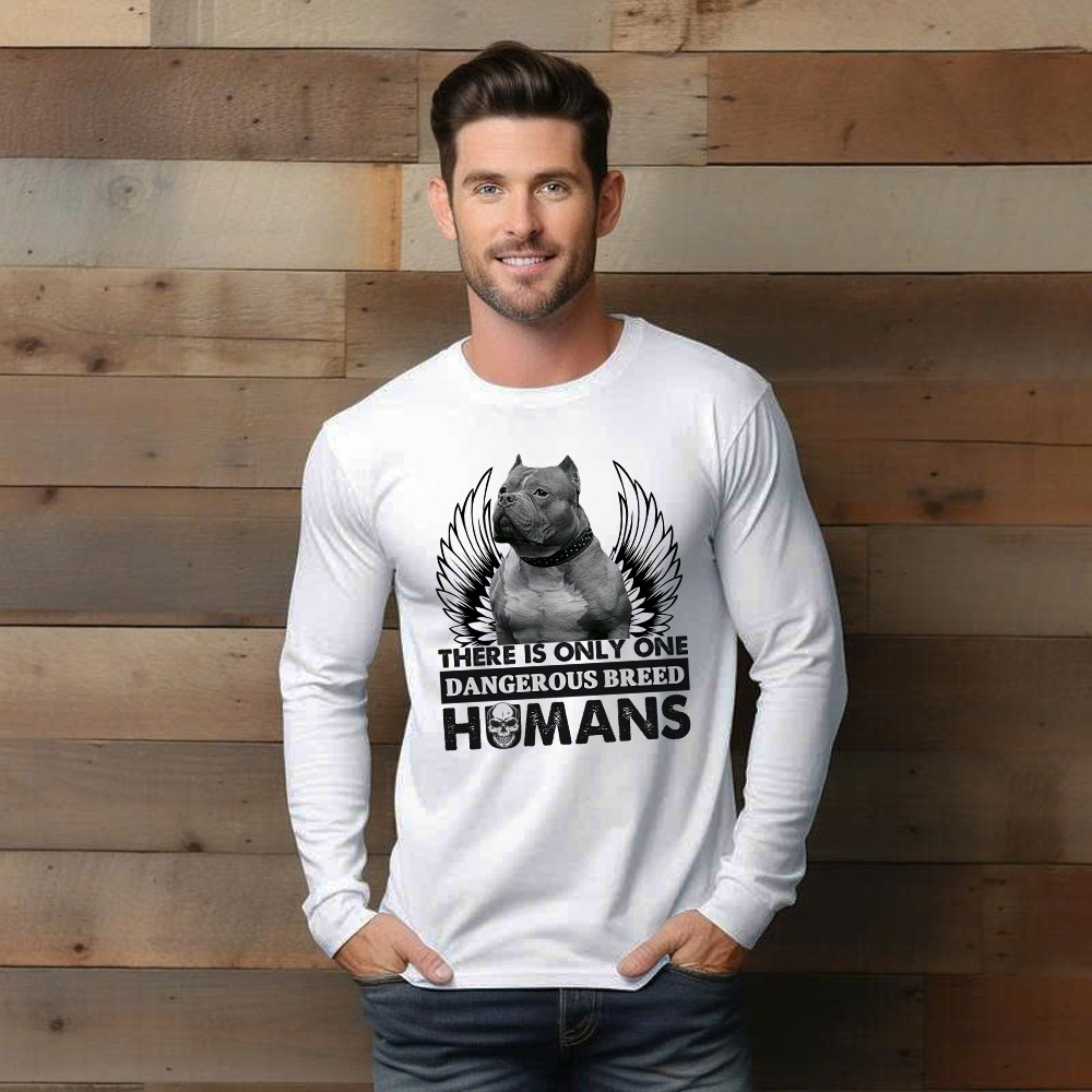 Pitbull There Is Only One Dangerous Breed Humans Shirt Funny Sarcastic Long Sleeve Shirt Dog Lovers Gift.