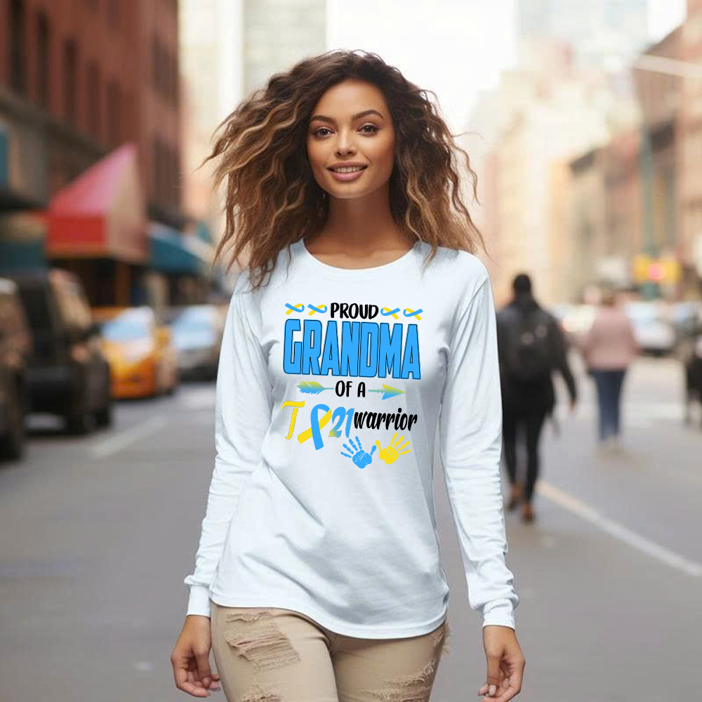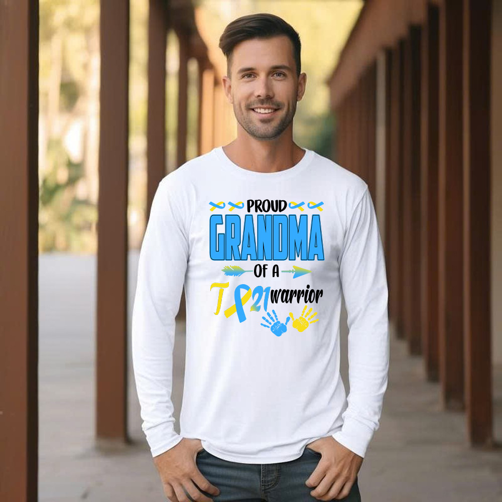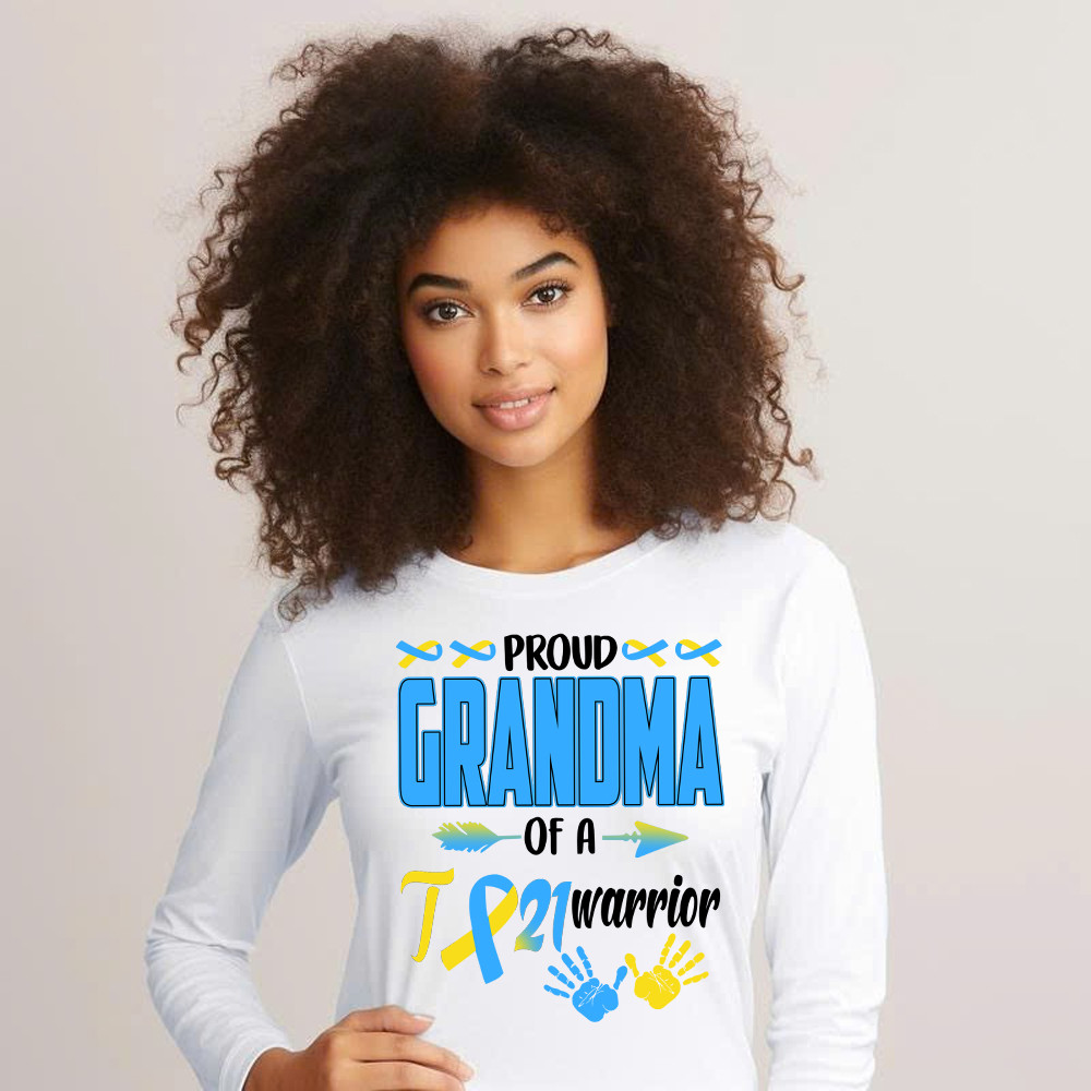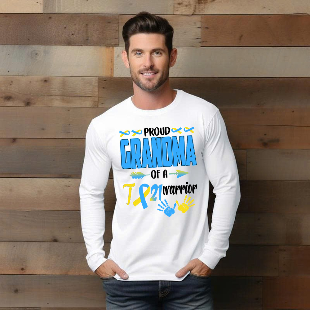 Proud Grandma Of A 21 Warrior Shirt Down Syndrome Awareness Matching Family Long Sleeve Shirt Gift.