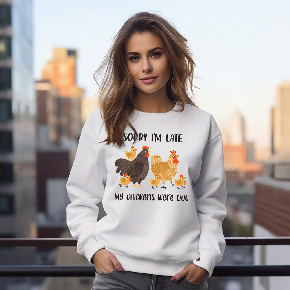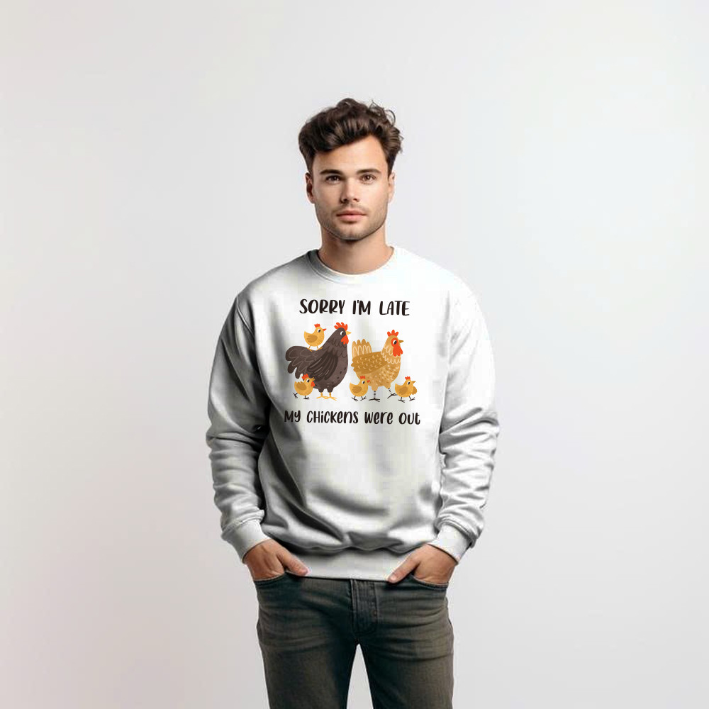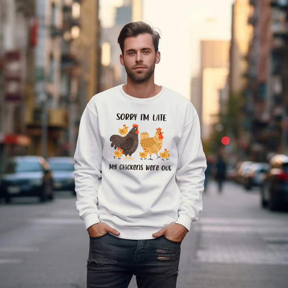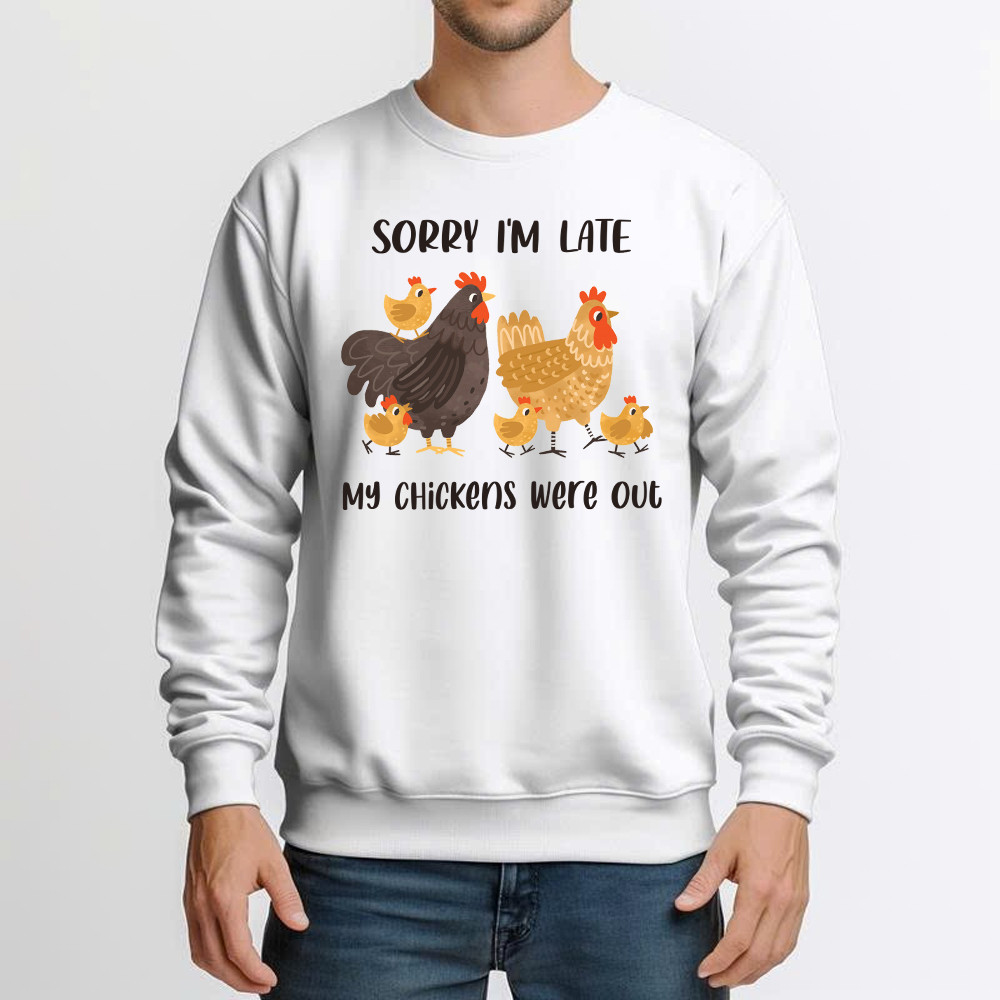 Sorry I’m Late My Chickens Were Out Sweatshirt Funny Sayings Shirt Gifts For Chicken Farmers.