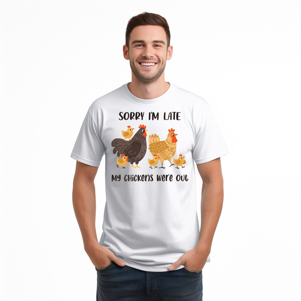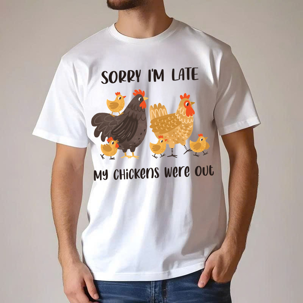 Sorry I’m Late My Chickens Were Out T Shirt Funny Sayings Shirt Gifts For Chicken Farmers.