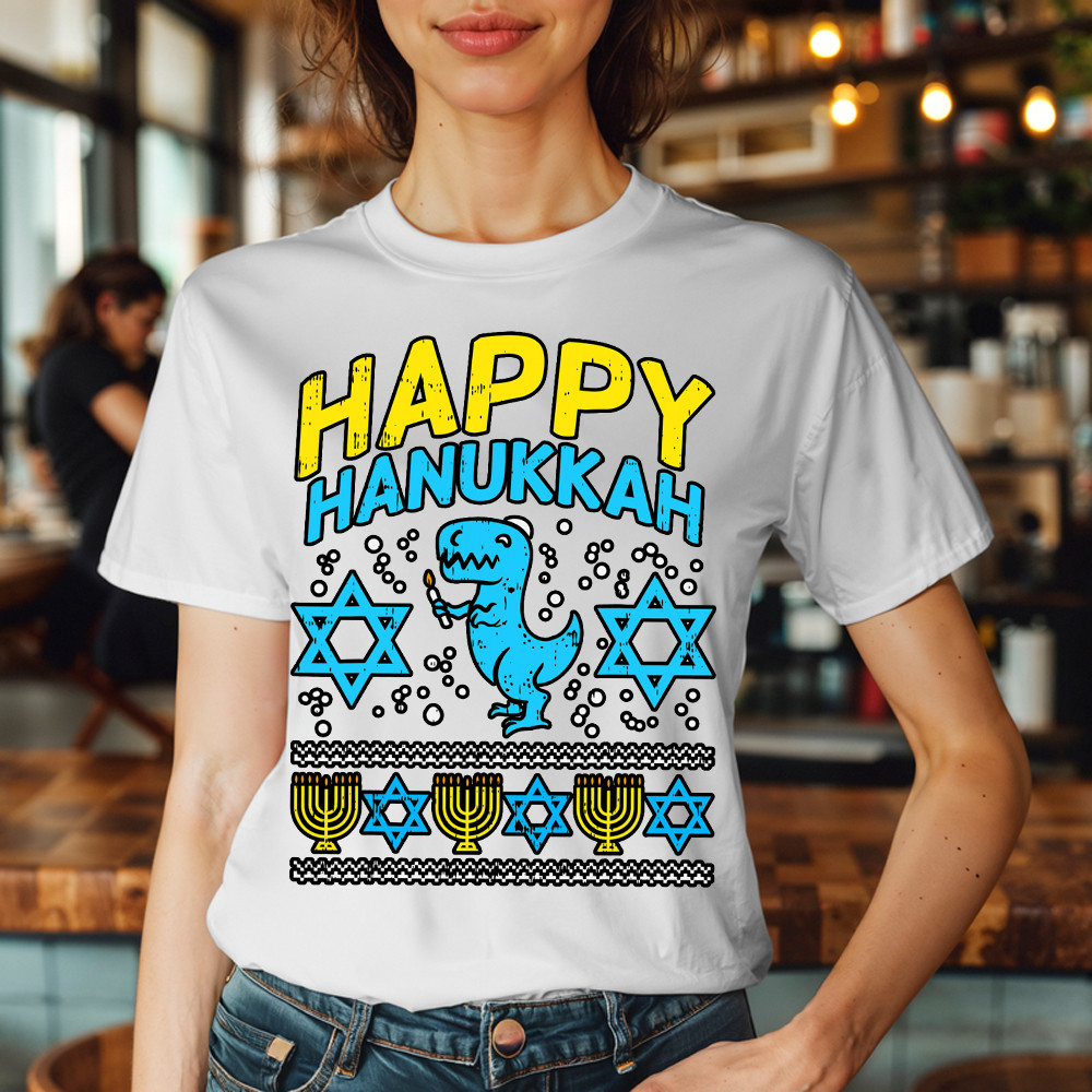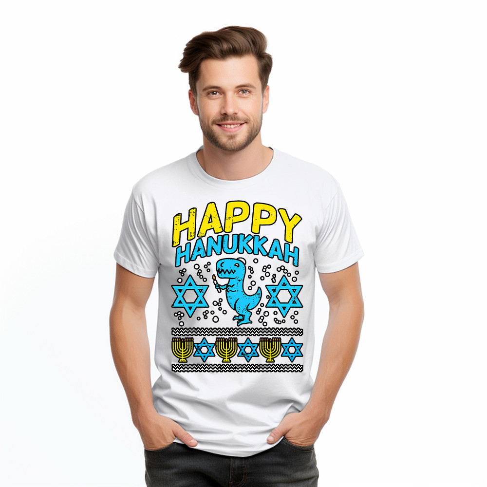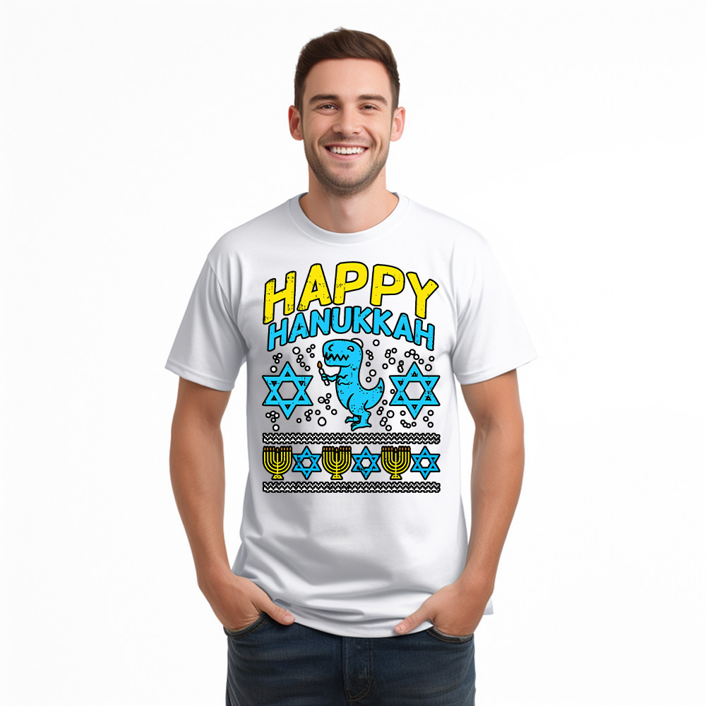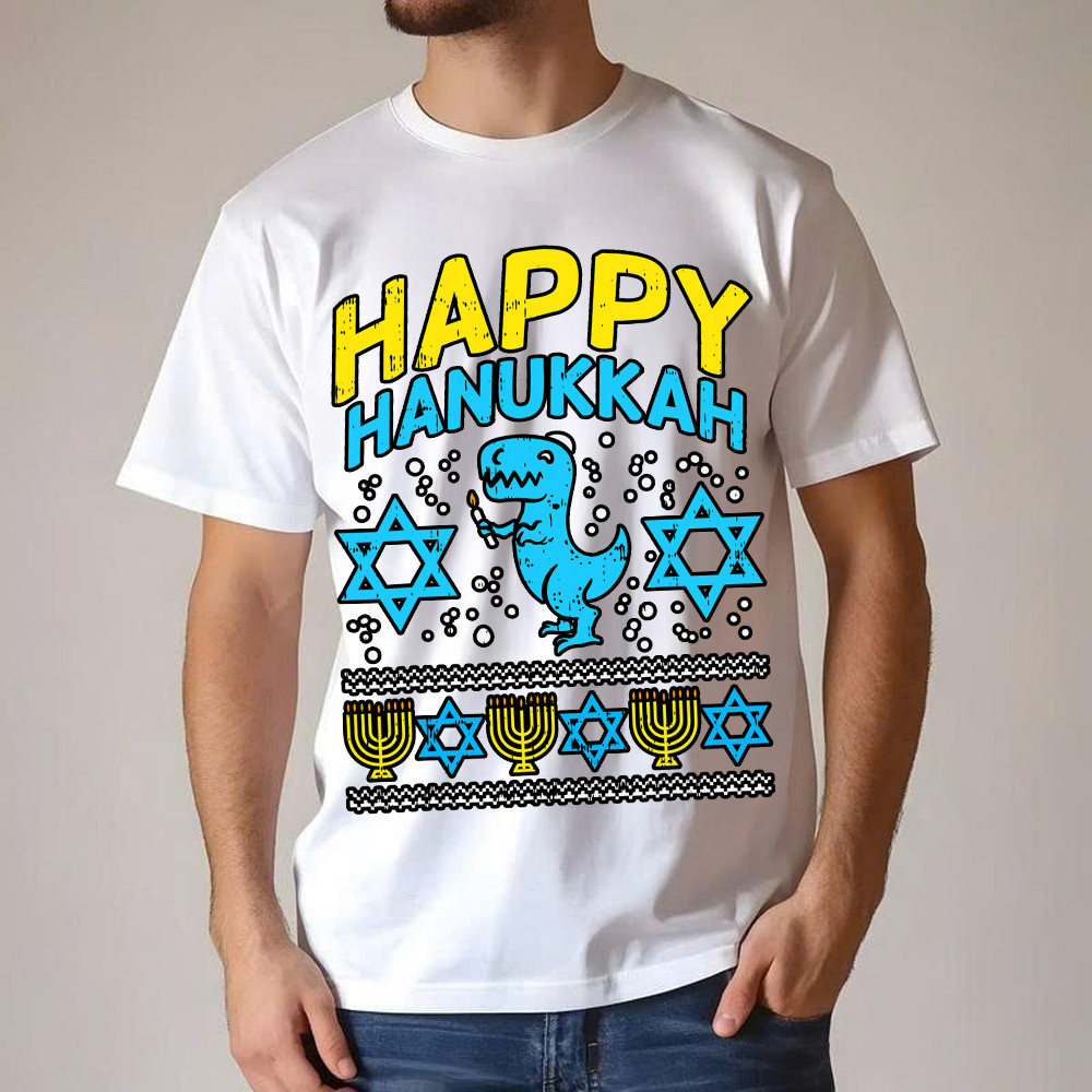 T-Rex Dinosaur Happy Hanukkah Jewish T-Shirt Jewish Birthday Gifts For Boys.