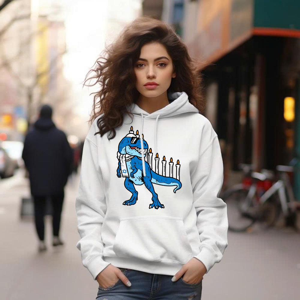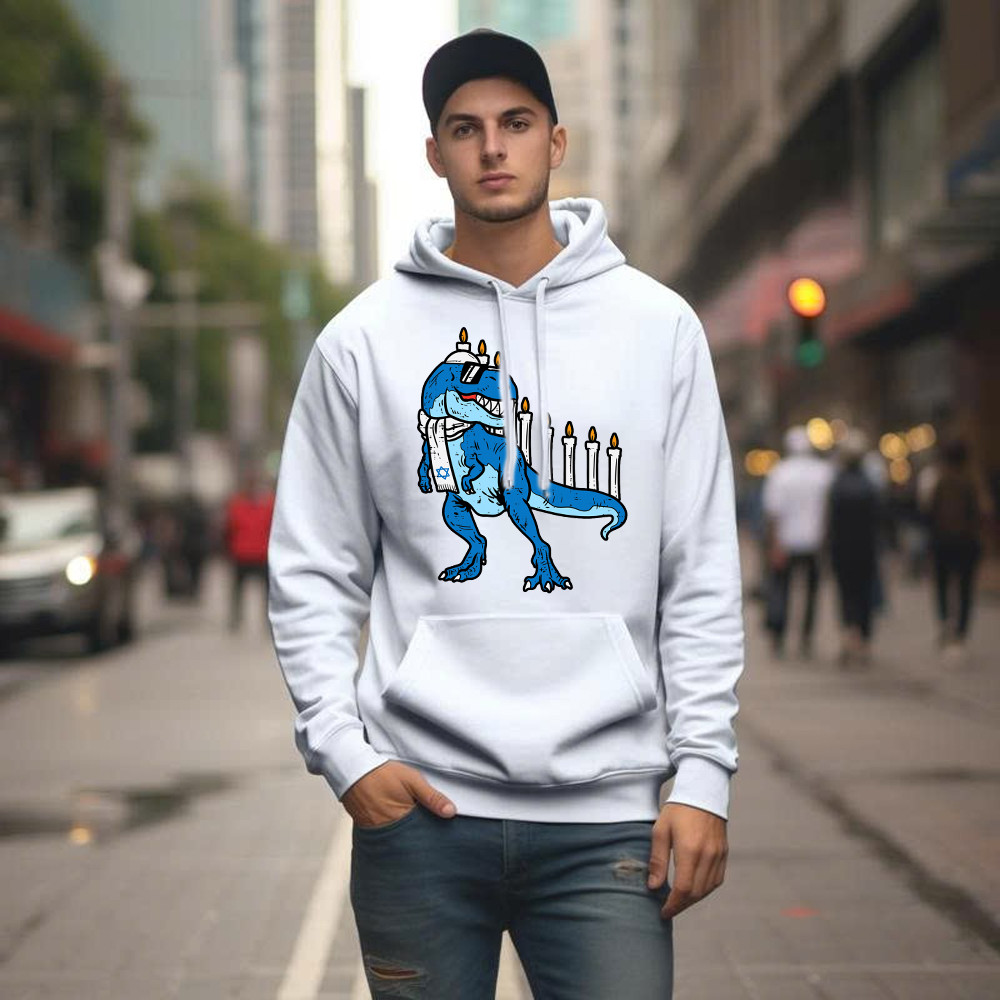 T-Rex Dinosaur Menorah Hanukkah Jewish Boys Hoodie Jewish Birthday Gifts For Boys.