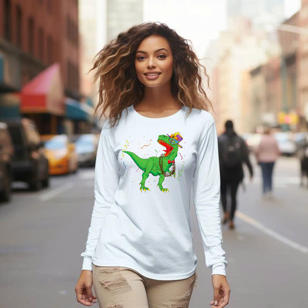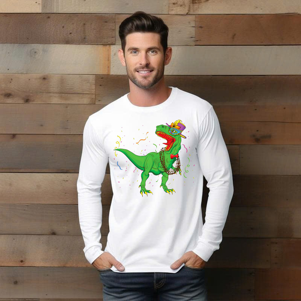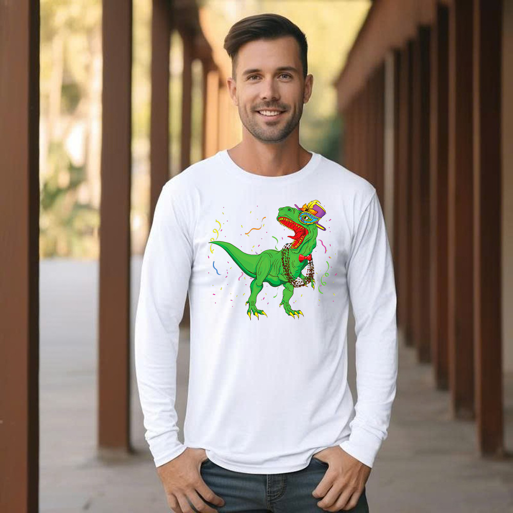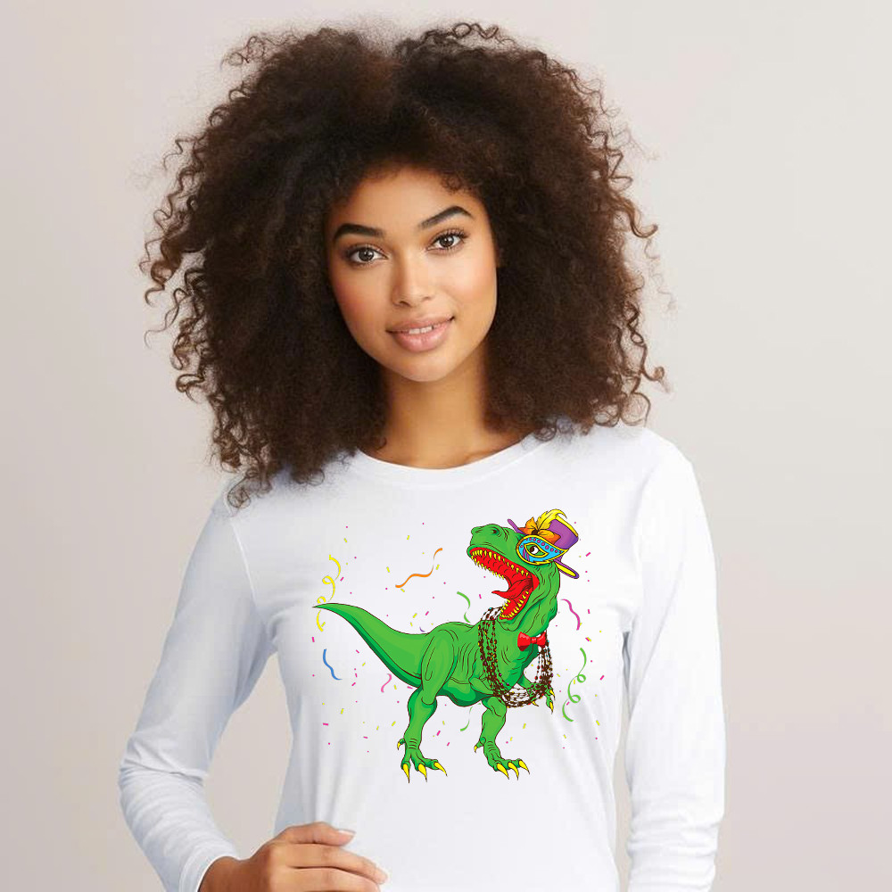 T-Rex Mardi Gras Shirt Dinosaur Lovers Party Long Sleeve Shirt Mardi Gras Themed Gifts.