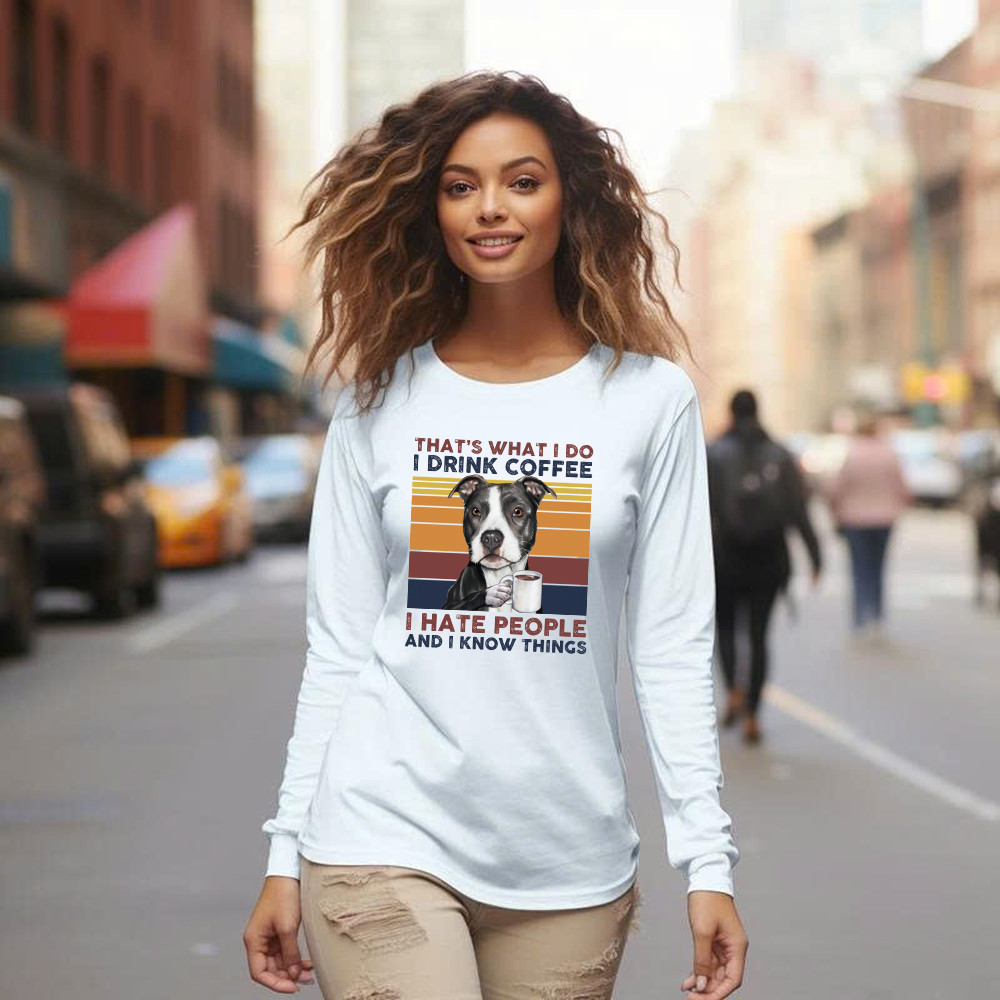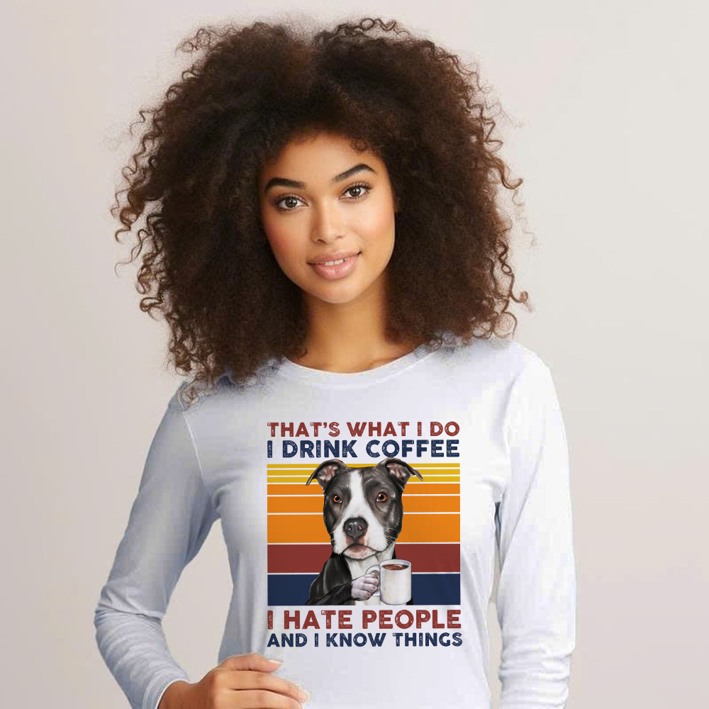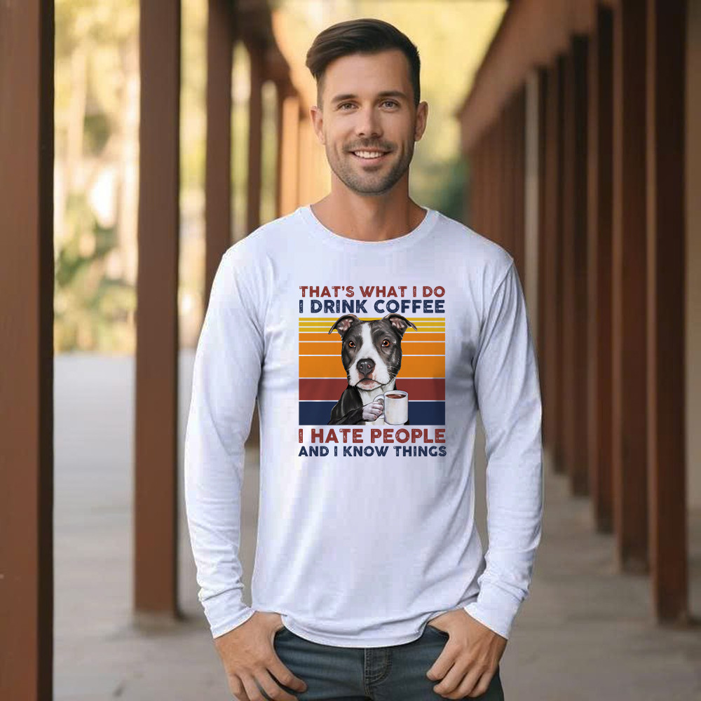 That’s What I Do I Drink Coffee I Hate People Shirt Funny Pitbull Long Sleeve Shirt Gift For Men.